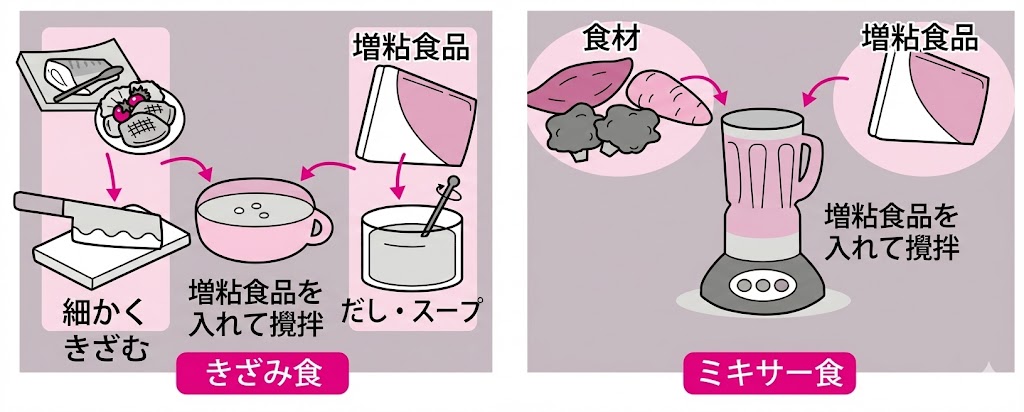 「きざみ食」と「ミキサー食」を飲み込みやすくする工夫