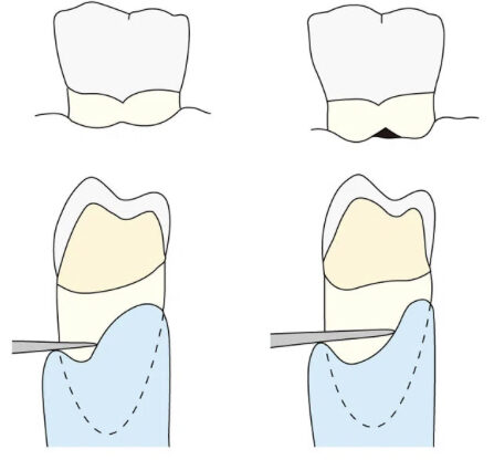 術後に少し「歯ぐきが下がる」ことがあります 治療後、1〜2mmほど歯ぐきが下がることがあり、それに伴い一時的に知覚過敏(歯がしみる症状)が出ることがあります。