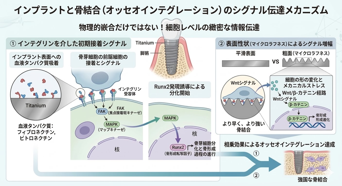 血液を引き寄せる特性: インプラント表面が血液を馴染ませることで、骨との結合を劇的に早めます。