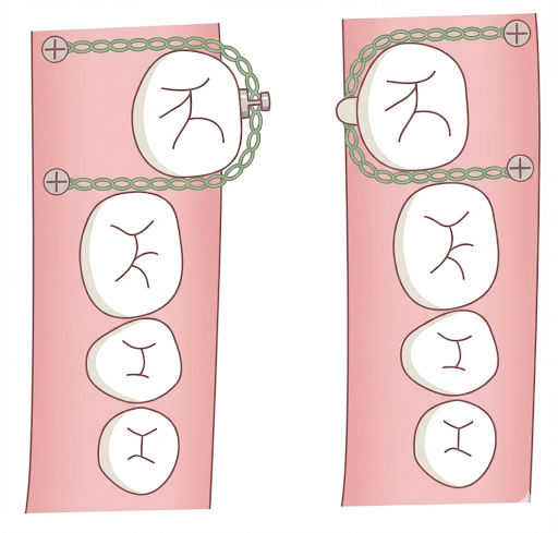 応用: 伸びすぎてしまった歯を、本来の高さに押し込む(圧入)ことも可能です。