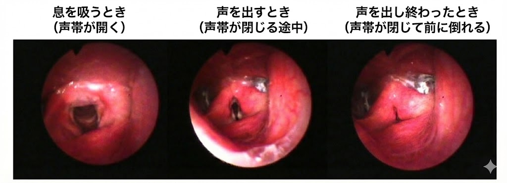 ここからわかること: 息を吸う時にのどがしっかり開き、息を止めた時に声帯がピタッと閉じるかを確認することで、「もしもの時に、自分の力で気管を守る能力(誤嚥防止機能)」がどのくらいあるのかがわかります。
