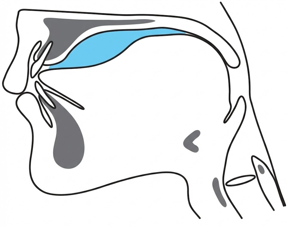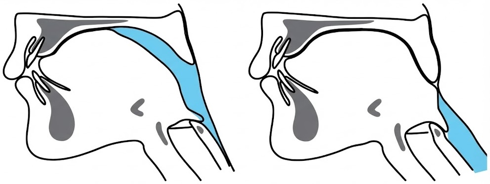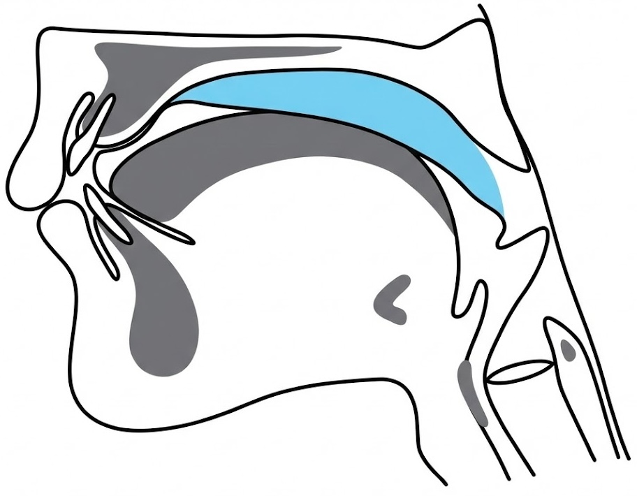 軟口蓋(なんこうがい): 硬口蓋の奥にある柔らかい部分。飲み込むときに形を変え、鼻へ食べ物が入らないよう蓋をします。
