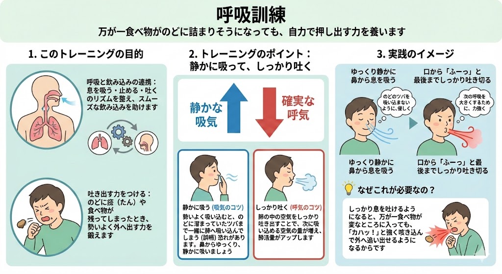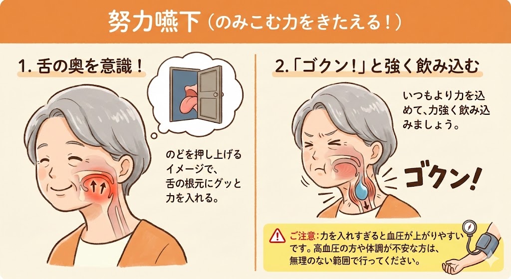 2. しっかり息を止める(誤嚥防止のため)。