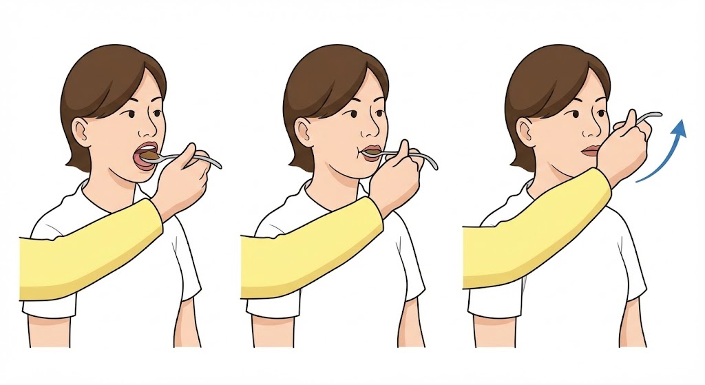 飲み込むスイッチが遅れる方や、舌の送り込みが苦手な方に。重力で食べ物がゆっくりのどへ流れるため誤嚥を防げます。 |