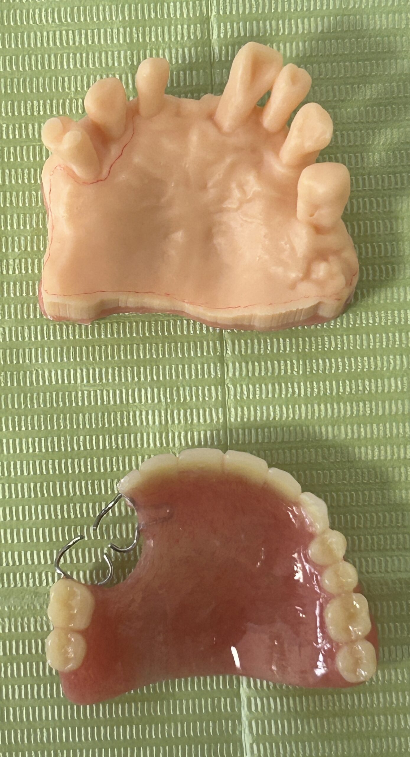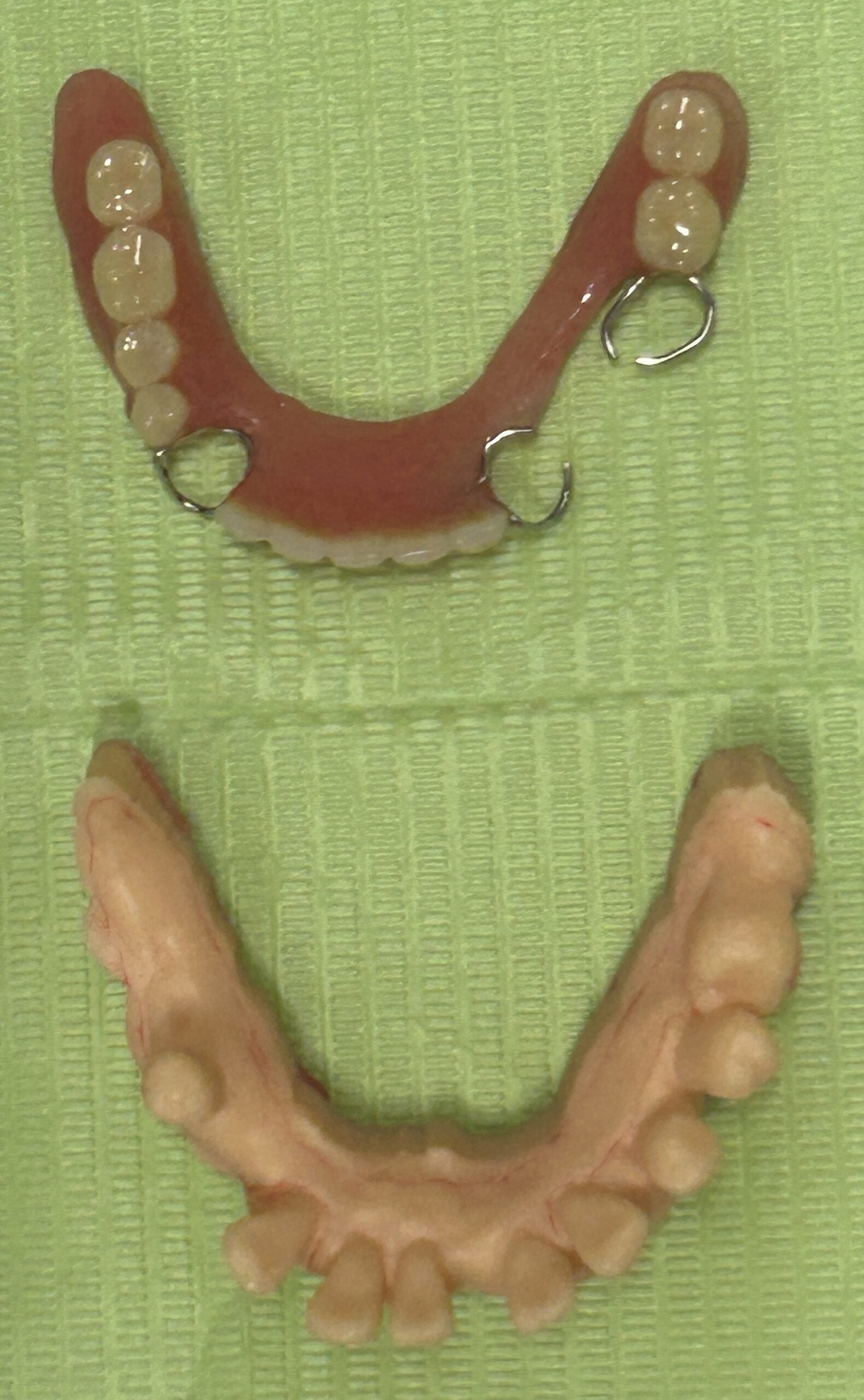 抜歯と同時に義歯を装着する即時義歯です。歯周病で動揺が著しい歯はスキャンして、3Dプリンターで出力し製作しています。