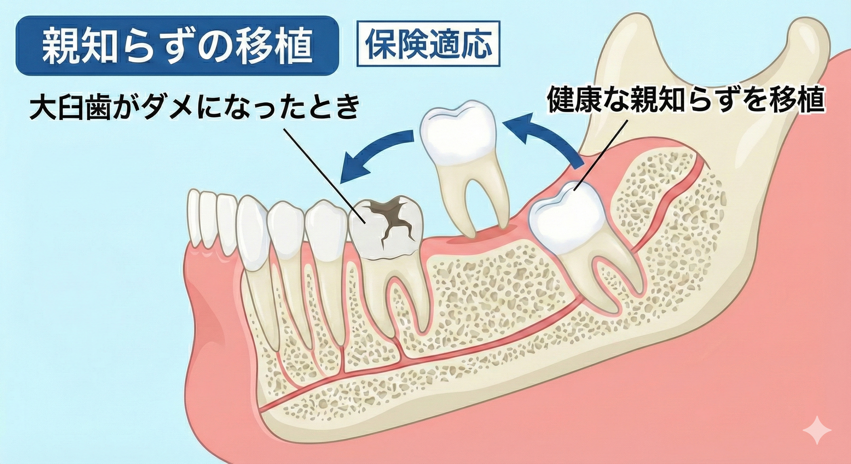 保険適用 親知らずを大臼歯(奥歯)に移植する場合 保険診療の規定通り