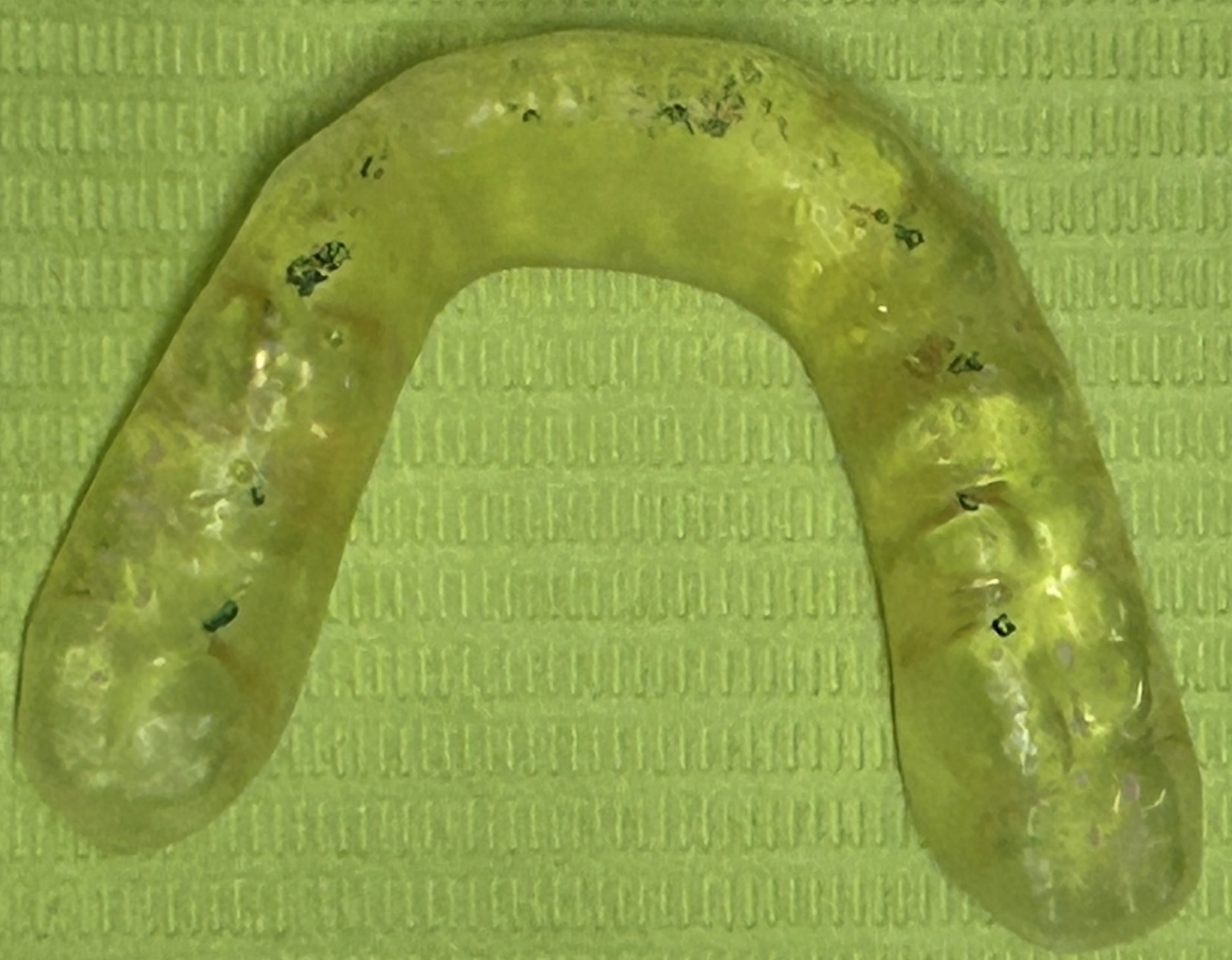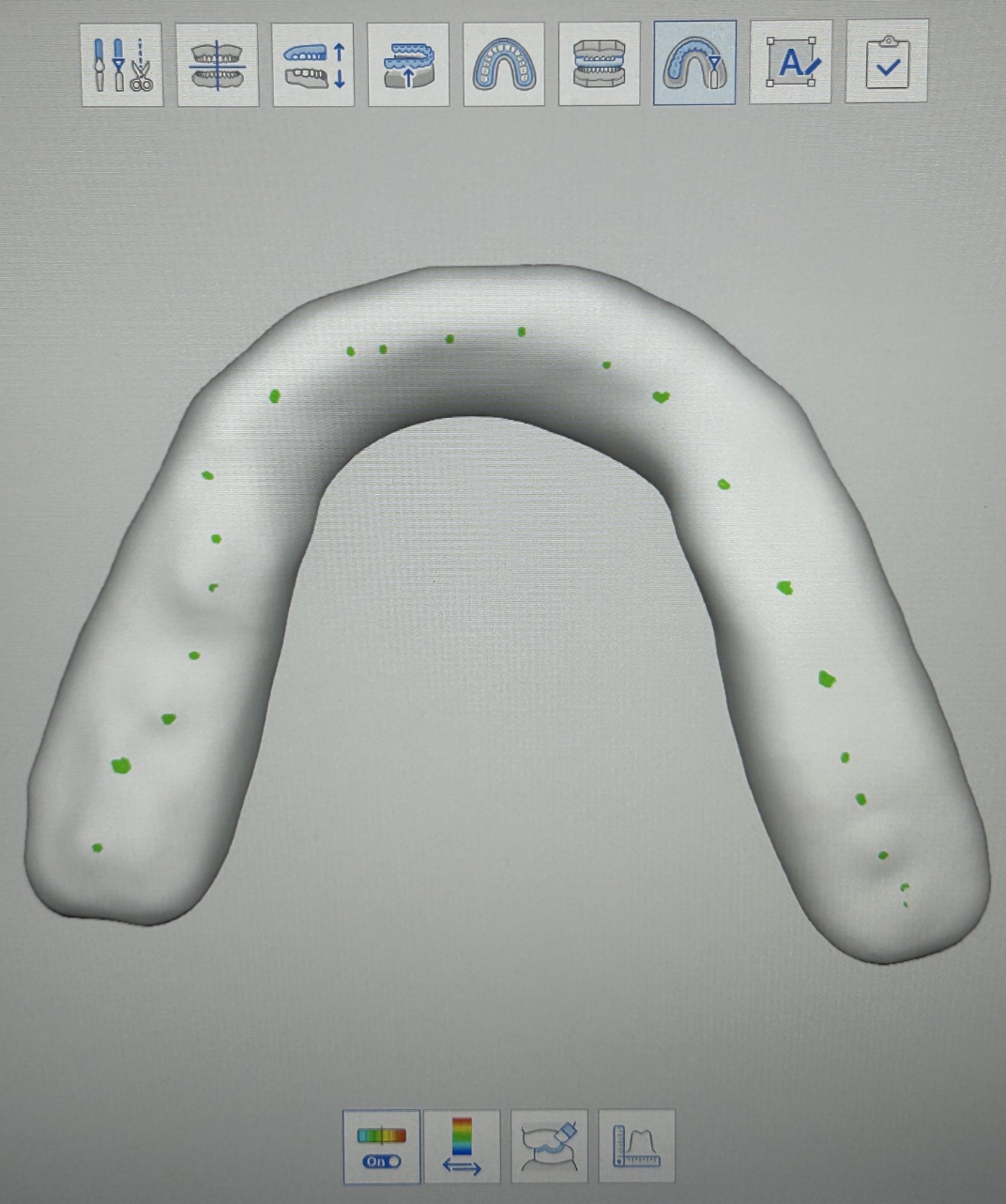 3Dプリンターを用いたマウスピース製作の様子です。デザインの変更、内面の維持力の調整、咬合接触の設定ができて便利です。